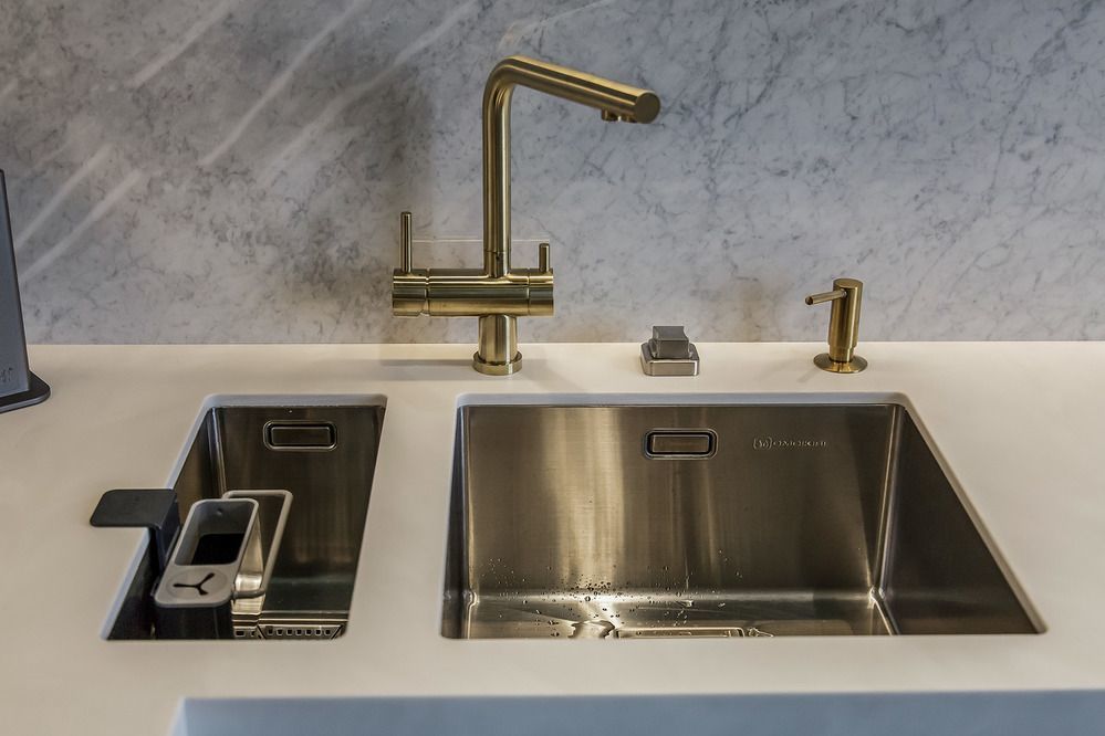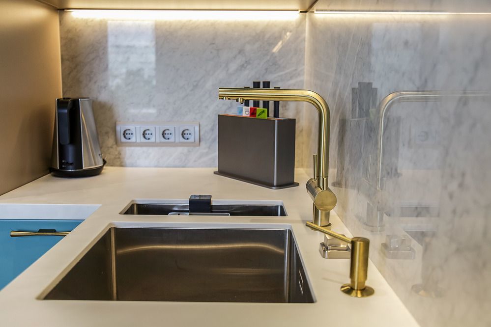 Современный дизайн и удобство использования благодаря высокому изливу;