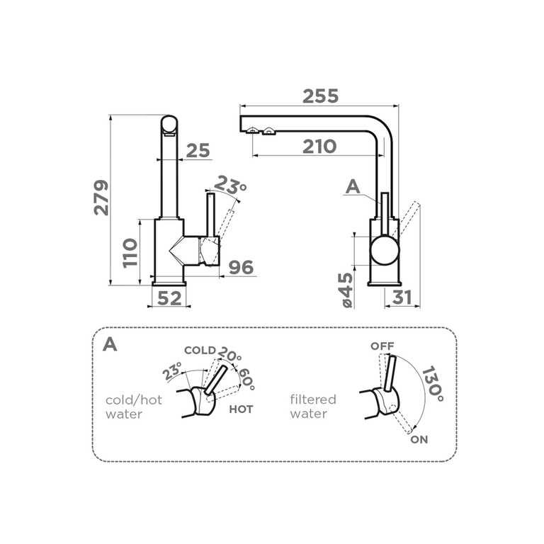 Технология PURE LIFE: подключение фильтра для очистки воды. Фильтрованная вода подается по отдельной трубке и не смешивается с водопроводной водой;
