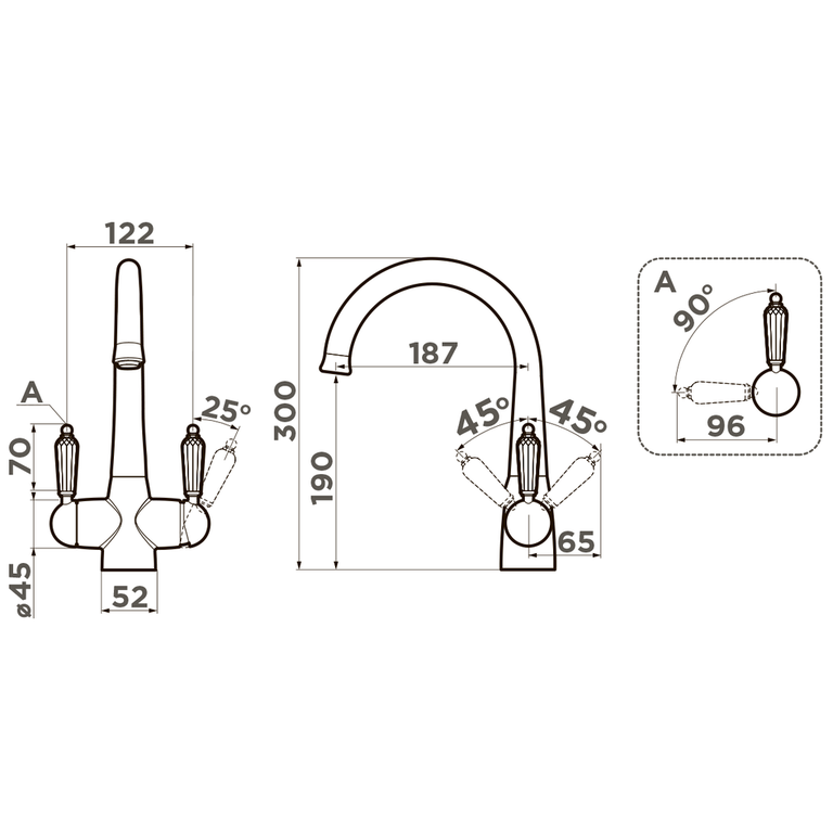 Эксклюзивный классический дизайн и удобство использования благодаря высокому изливу;