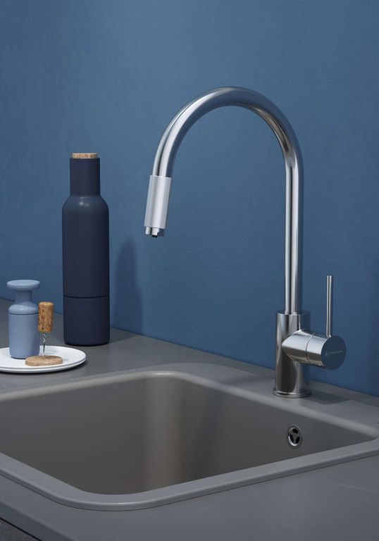 Tamura с подключением фильтрованной воды ломает стереотипы о стандартных однорычажных смесителях. На изливе установлено кольцо, благодаря которому можно регулировать подачу фильтрованной воды;