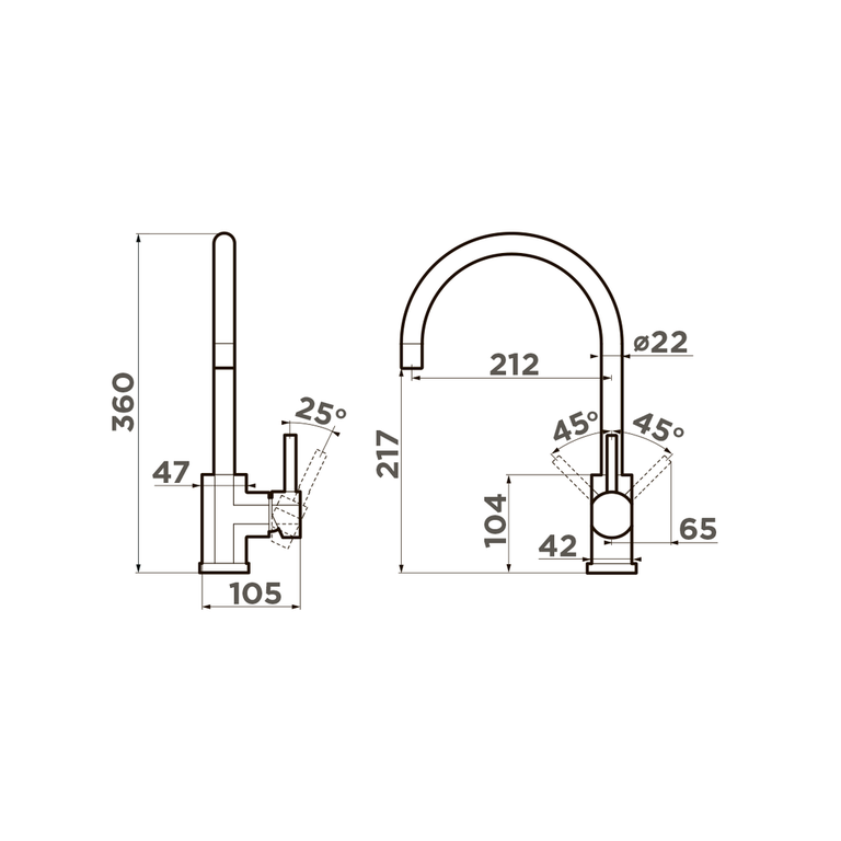 Современный дизайн и удобство использования благодаря высокому изливу;