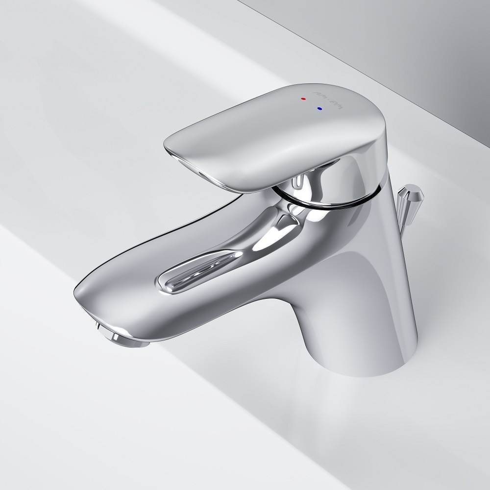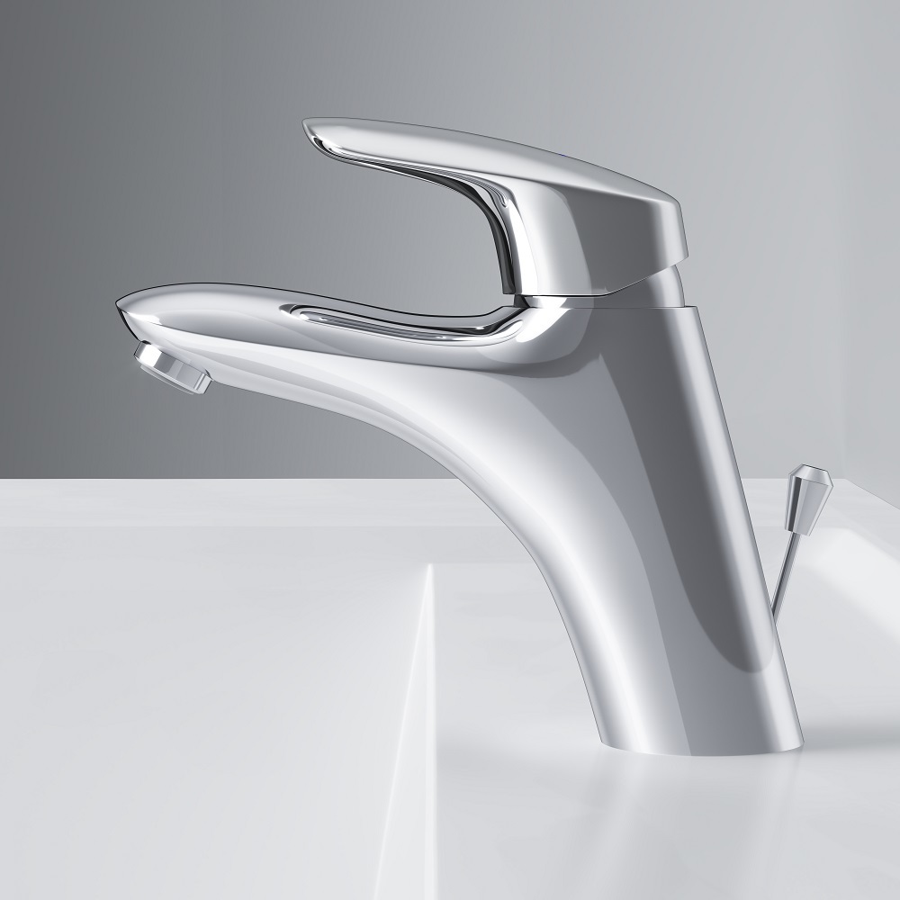 Солидность и основательность: цельнолитой крупный смеситель идеально подходит для больших раковин, а его толстые стенки снижают уровень шума.
