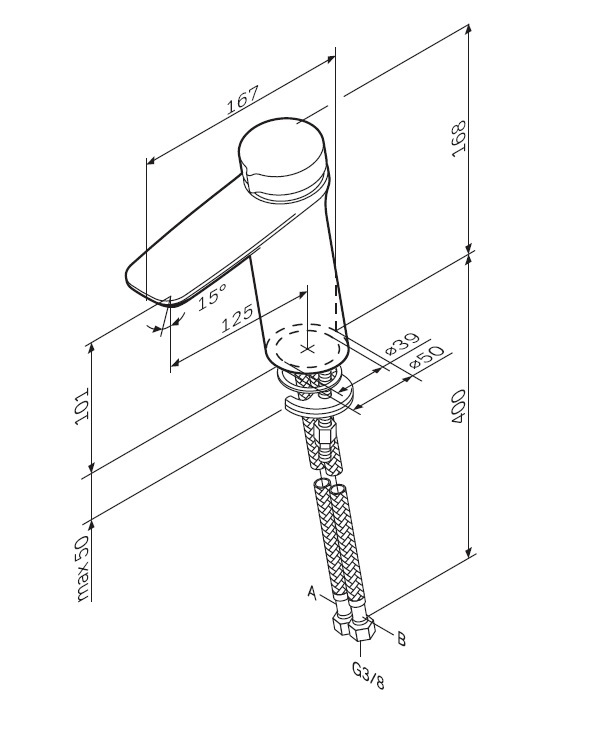 Идеальная геометрия, разработанная по стандарту SA (Smart Angle) – математические выверенное соотношение высоты смесителя, длины излива и наклона корпуса для удобного использования на умывальнике любого размера.