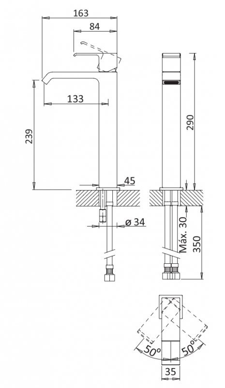 Комплектация: смеситель для накладной раковины без донного клапана.