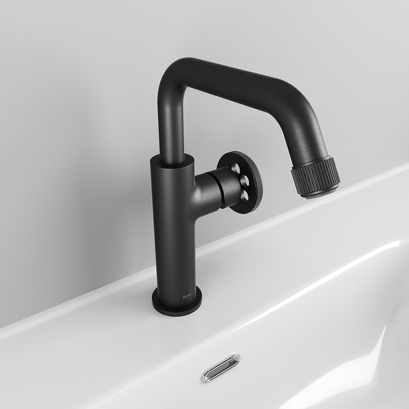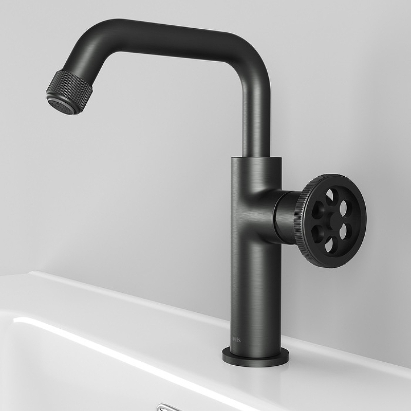 Смеситель для умывальника Grange в стильном оттенке графит имеет запоминающийся дизайн и яркие, неординарные детали. Круглая дизайнерская ручка красиво, оригинально выглядит и удобно поворачивается даже мыльной рукой. Такой смеситель прекрасно дополнит интерьер в трендовом стиле лофт.