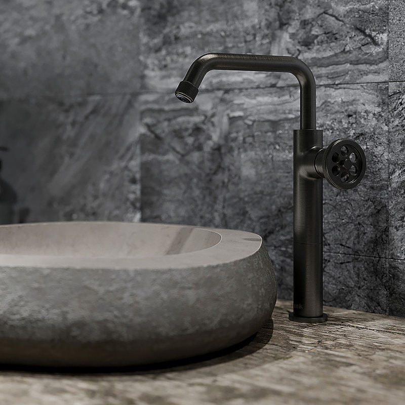 Смеситель для настольного умывальника Grange в стильном оттенке графит имеет запоминающийся дизайн и яркие, неординарные детали. Круглая дизайнерская ручка красиво, оригинально выглядит и удобно поворачивается даже мыльной рукой. Такой смеситель прекрасно дополнит интерьер в трендовом стиле лофт. Благодаря высокому корпусу смеситель может монтироваться как на умывальник, так и на мебельную тумбу или столешницу, на которой установлен настольный умывальник-чаша.