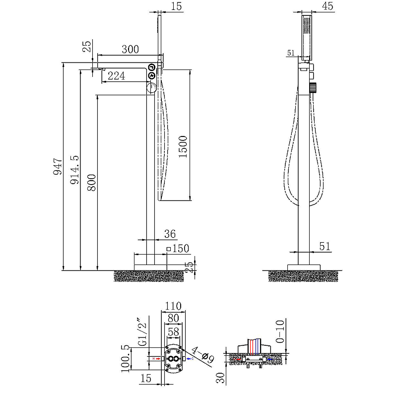 • Смеситель напольный для ванны
