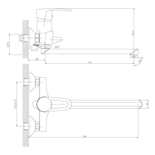 В комплекте: смеситель с эксцентриками, держатель душевой лейки, душевая лейка, душевой шланг.