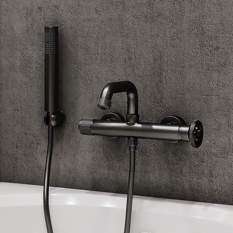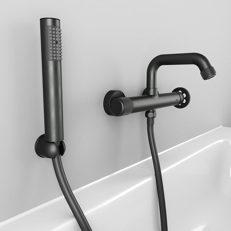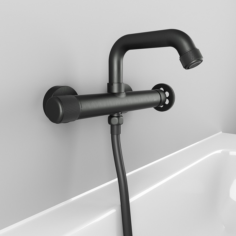 Смеситель для ванны Grange в стильном оттенке графит имеет запоминающийся дизайн и яркие, неординарные детали. Круглая дизайнерская ручка красиво, оригинально выглядит и удобно поворачивается даже мыльной рукой. Такой смеситель прекрасно дополнит интерьер в трендовом стиле лофт и подойдет как для ванны, так и для душевой кабины; излив поворотный, и его можно при необходимости сложить. В комплекте душевые аксессуары в тон смесителю — лейка, настенный держатель и гибкий шланг (1,5 м) из силикона с защитой от перекручивания.