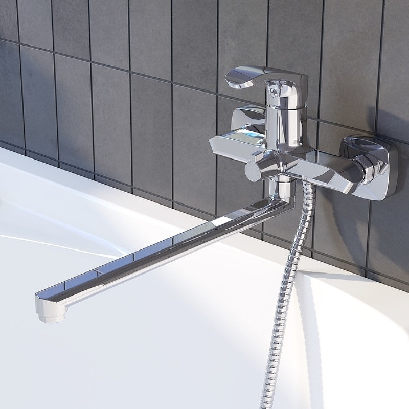Смеситель для ванны Joker обращает на себя внимание необычным дизайном, который практически не имеет аналогов: утолщенная ручка оригинальной формы, удобная для захвата намыленной рукой, интересное сочетание граней и скруглений на корпусе. Без душевых аксессуаров в комплекте.
