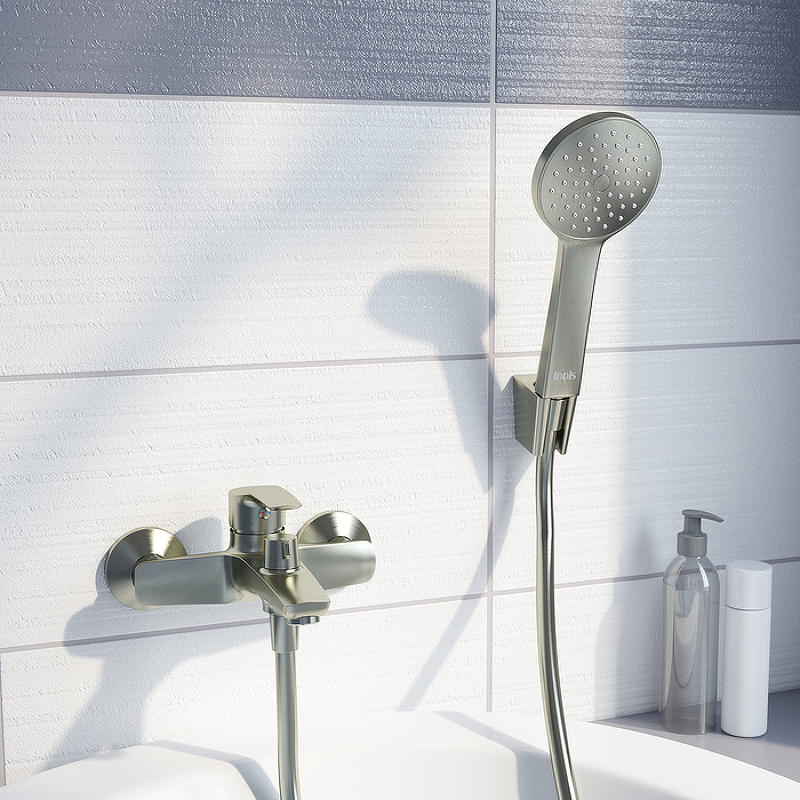 Смеситель для умывальника Ray имеет универсальный дизайн и благодаря стильному сатиновому покрытию станет ярким акцентом современного интерьера ванной. Покрытие устойчиво к появлению разводов и отпечатков пальцев. В комплекте однорежимная лейка для душа, ПВХ-шланг и настенный держатель для лейки – все в тон смесителя.