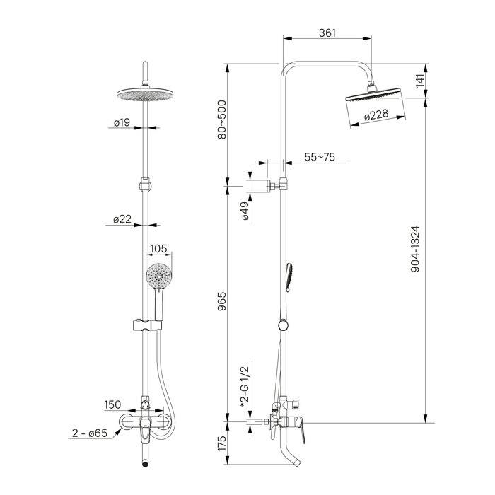 В комплект входят лейка и шланг из нержавеющей стали длиной 1,5 м с защитой от перекручивания.