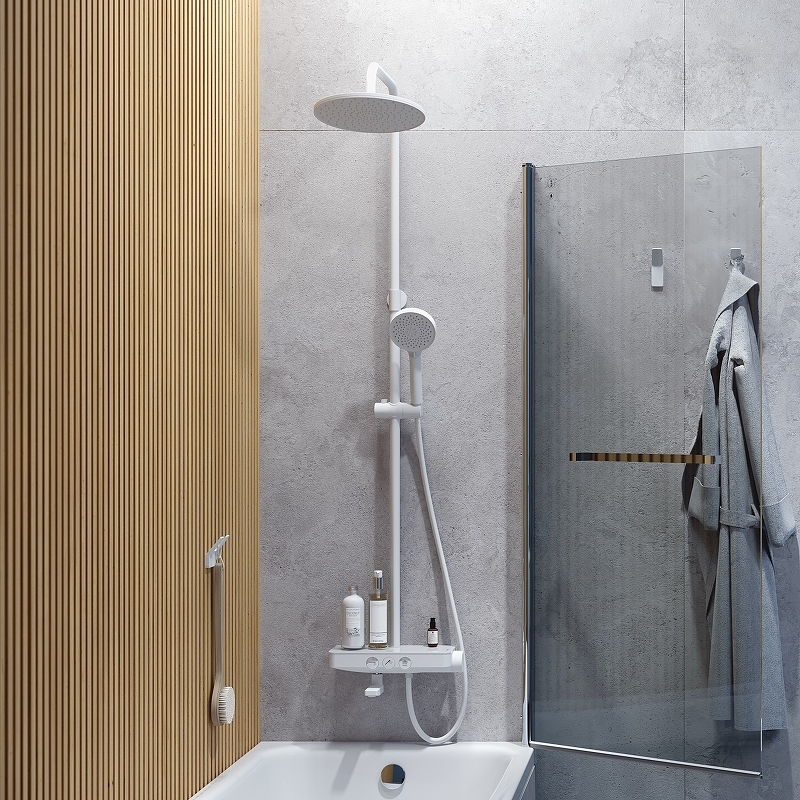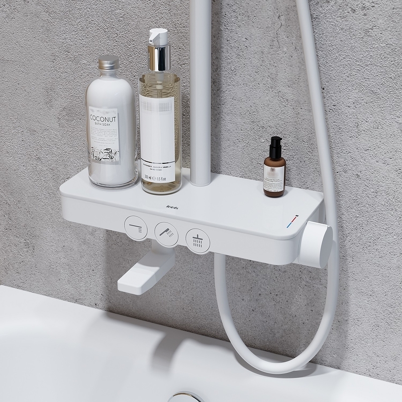 Смеситель для ванны Shefy – мечты о будущем доступные уже сегодня! Смеситель обращает на себя внимание дизайнерским корпусом с декоративными элементами из закаленного стекла и продуманным функционалом. Кнопочное управление Push Control – одновременно технологичное и невероятно простое – позволяет осуществлять переключение режимов с излива на верхнюю или нижнюю лейку простым нажатием кнопки. Смеситель Shelfy в цвете хром со стильными белыми вставками будет созвучен как классическому, так и современному интерьеру. Его поверхность возьмет на себя роль небольшой полочки – на ней будет удобно разместить косметические средства. Шланг из ПВХ (1,5 м), ручная лейка и держатель для лейки в комплекте.