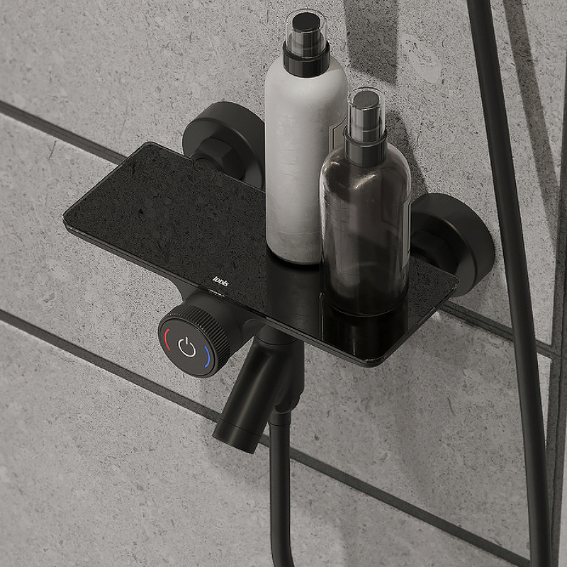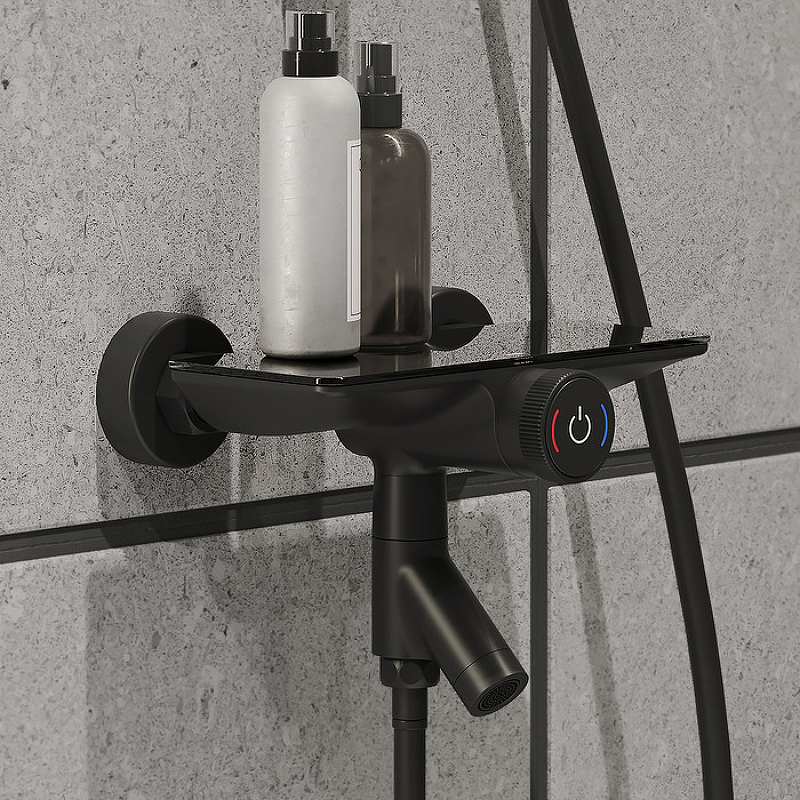 Смеситель Shefy в трендовом черном цвете – мечты о будущем доступные уже сегодня! Смеситель обращает на себя внимание дизайнерским корпусом с декоративными элементами из черного закаленного стекла и продуманным функционалом. Кнопочное управление Push Control – одновременно технологичное и невероятно простое – позволяет осуществлять включение-выключение воды мягким нажатием кнопки и регулировать температуру ее поворотом. Лаконичная форма Shelfy будет созвучна как классическому, так и современному интерьеру. А плоская поверхность смесителя возьмет на себя роль небольшой полочки – на ней легко разместятся шампуни и гели для душа. Без душевых аксессуаров в комплекте.