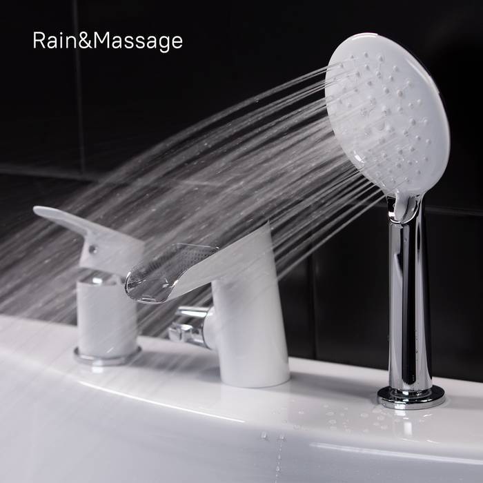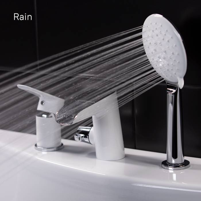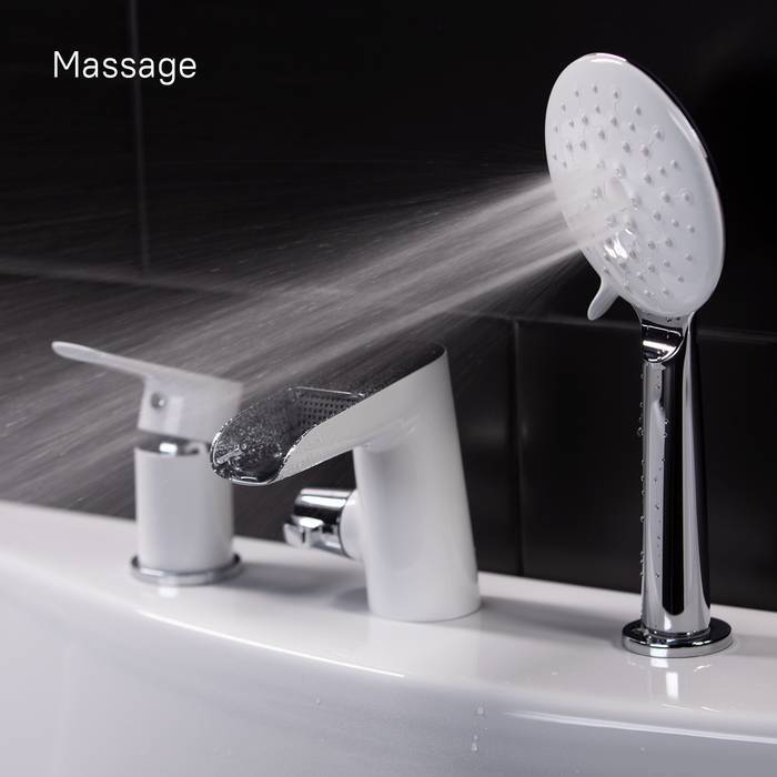 Смеситель для ванны из коллекции Cloud – воплощение легкости и простоты. Игра двух цветов — белого и хромированного — создает утонченный и стильный продукт, который подойдет к интерьеру в современном и классическом стиле. Широкий каскадный излив обеспечивает не только красивый и роскошный поток воды, но и приятный функционал: пропускная способность такого смесителя значительно увеличена, что позволяет набрать ванну в несколько раз быстрее. Монтаж на борт ванны позволяет установить смеситель и его отдельные элементы в наиболее подходящем с точки зрения дизайна месте. В комплекте трехрежимная лейка для душа и шланг из нержавеющей стали (2 м) с защитой от перекручивания.