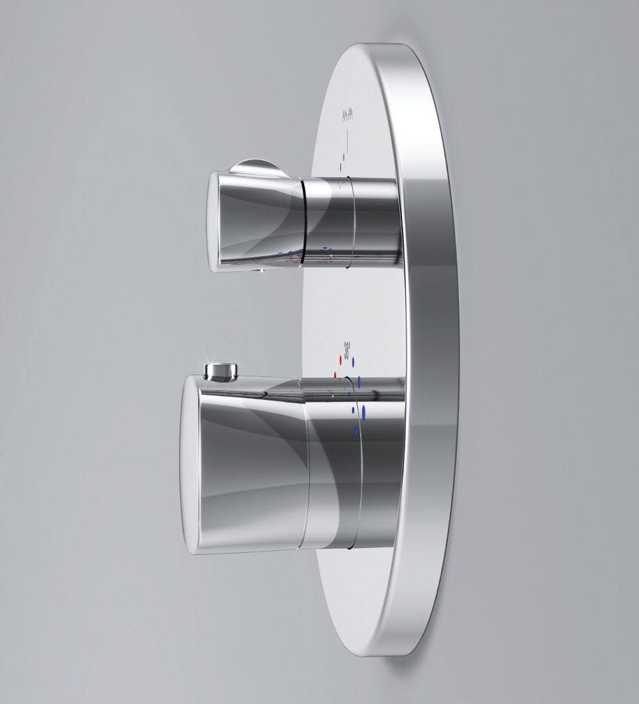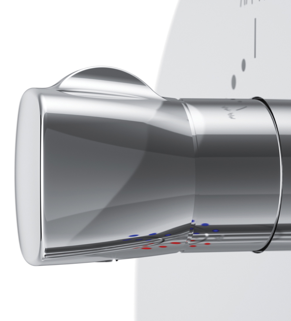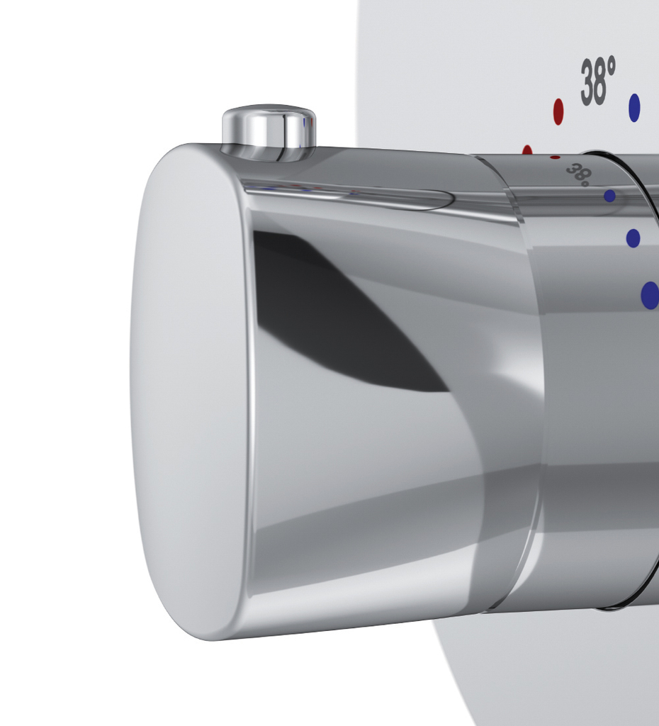 Стабильно комфортная температура воды без перепадов: термостатический картридж с высокочувствительным термоэлементом Vernet и быстрой реакцией на изменения температуры или давления в водопроводной сети надежно защищает от ожога даже при внезапном отключении холодной воды.