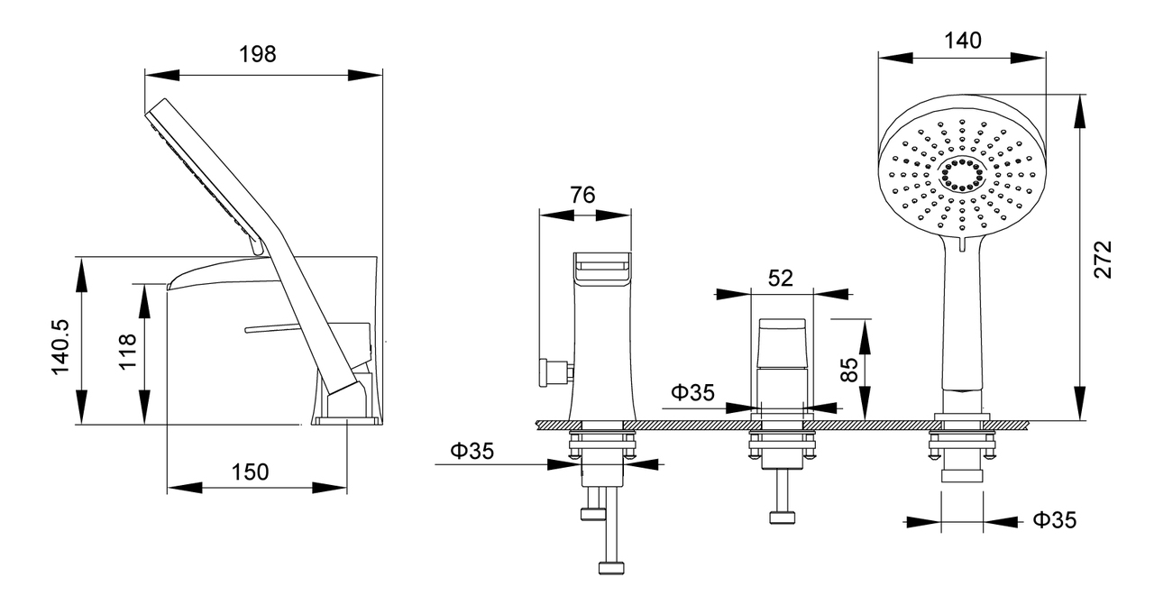 • Блок управления хол./гор. водой, врезной - 1 шт.