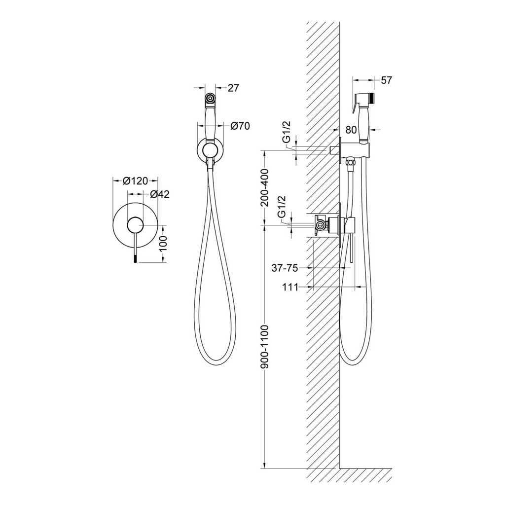 • Держатель лейки (латунный) с подключением шланга - 1 шт.
