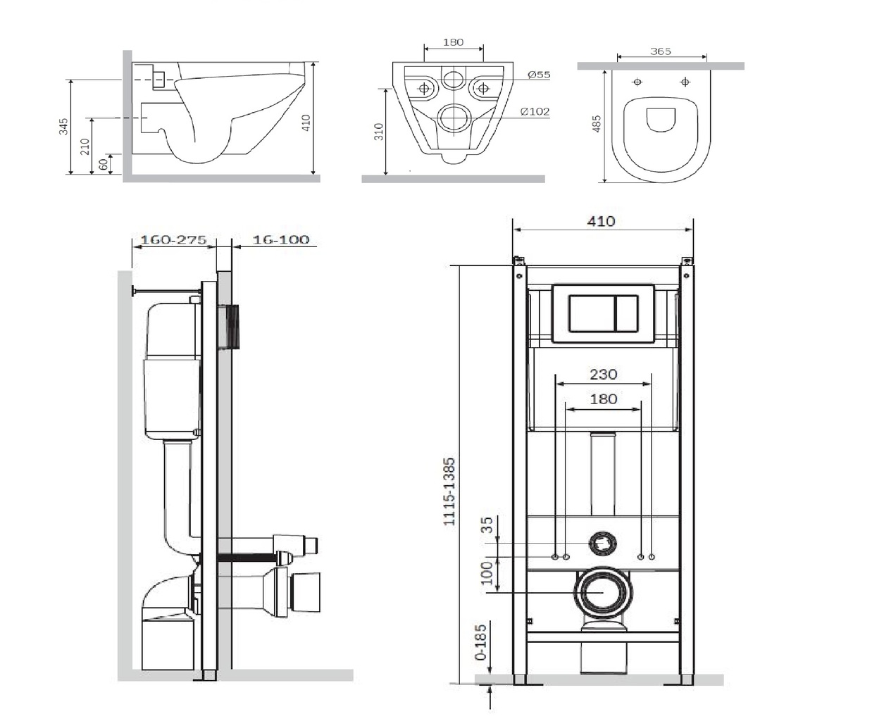 • Полностью готовый к установке комплект: система инсталляции с клавишейишей подвесной унитаз с сиденьем.