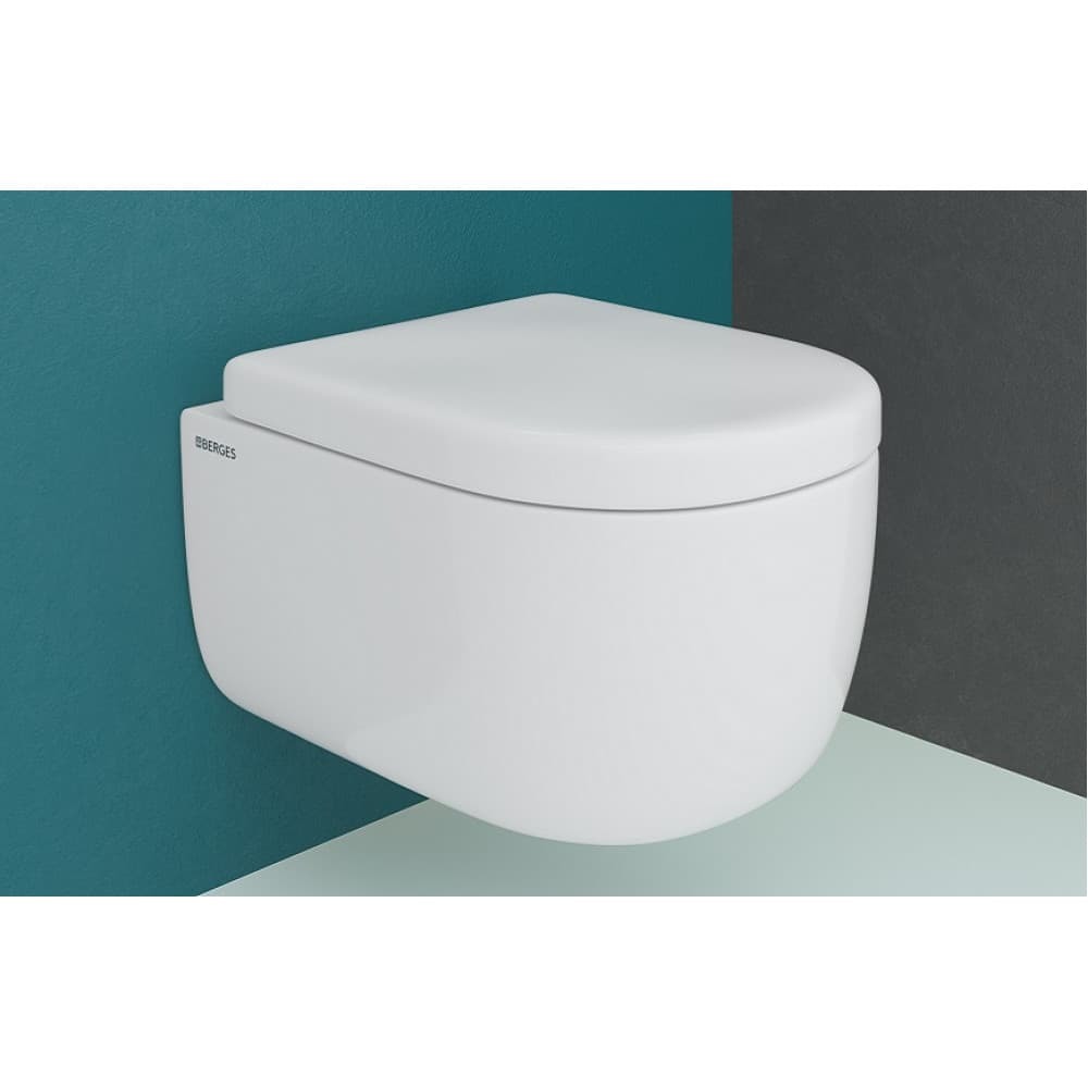 Подвесной унитаз с инсталляцией Berges инсталляция NOVUM, кнопка L3, унитаз MASCON Rimless, сидение дюропласт Toma Slim SO