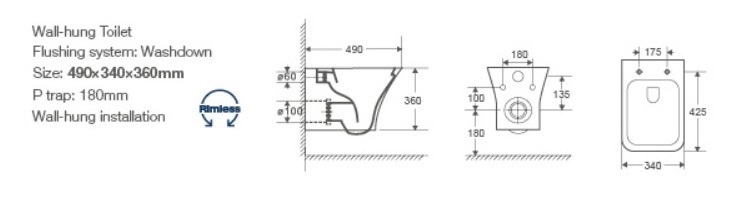 Подвесной безободковый унитаз Ceruttispa Vettore aria Размер: 490X360X340 мм Цвет: белый Тип: подвесной Слив: безободковый Материал: фаянс Выпуск: горизонтальный Сидение: быстросъемное из дюропласта, с механизмом плавного опускания