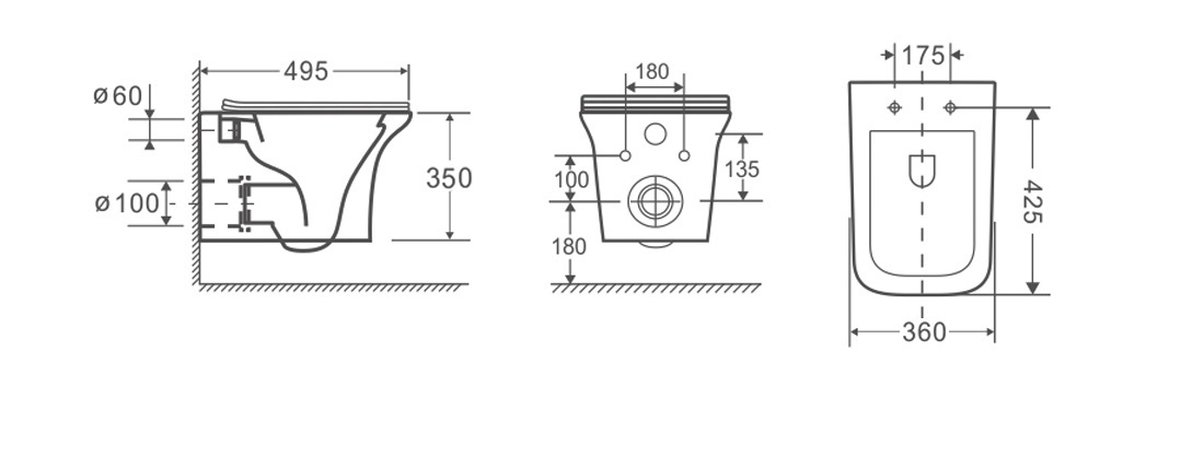 Подвесной унитаз Ceruttispa Nivolet aria Размер:495x360x350 мм Цвет: белый Тип: подвесной безободковый Материал: фаянс Выпуск: горизонтальный Сидение: быстросъемное, дюропласт, с механизмом плавного опускания