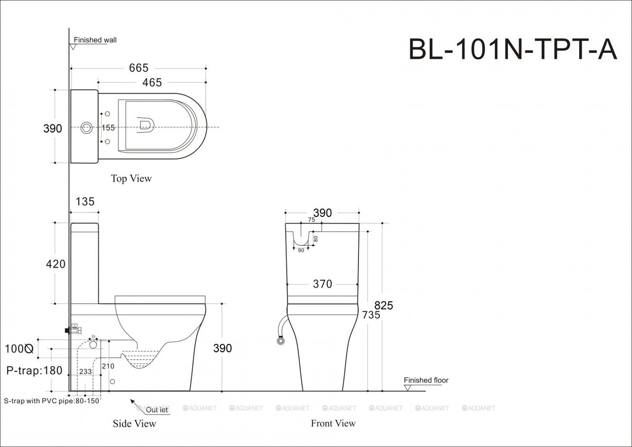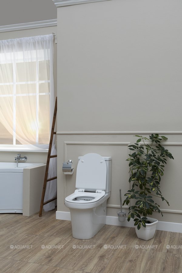 Напольный унитаз Aquanet Rimless Nova BL-101N-TPT-A в полной мере соответствует понятию «ночная ваза» Он, действительно, очень напоминает по форме своей вазу с очертаниями перевернутой усеченной пирамиды и характерными декоративными утолщениями по краям в виде ободка Только ободок внешний, а не внутренний, как у большинства унитазов Это безободковая модель, в которой негде скапливаться грязи Изделие имеет покрытие, препятствующее скоплению грязи на поверхности, вся она вместе с потоком воды уходит в сток В комплект входит оригинальной формы ультратонкая крышка-сиденье из дюрапласта с механизмом плавного опускания SoftClose Для использования необходимо дополнительно приобрести бачок, входящий в ту же коллекцию