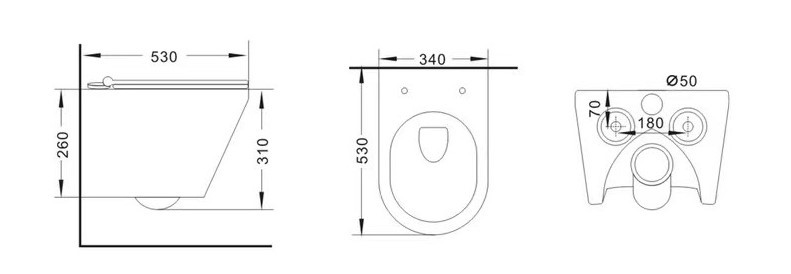 - ДУШЕВАЯ система смыва (вода поступает через отверстия, расположенные по всему ободу чаши)