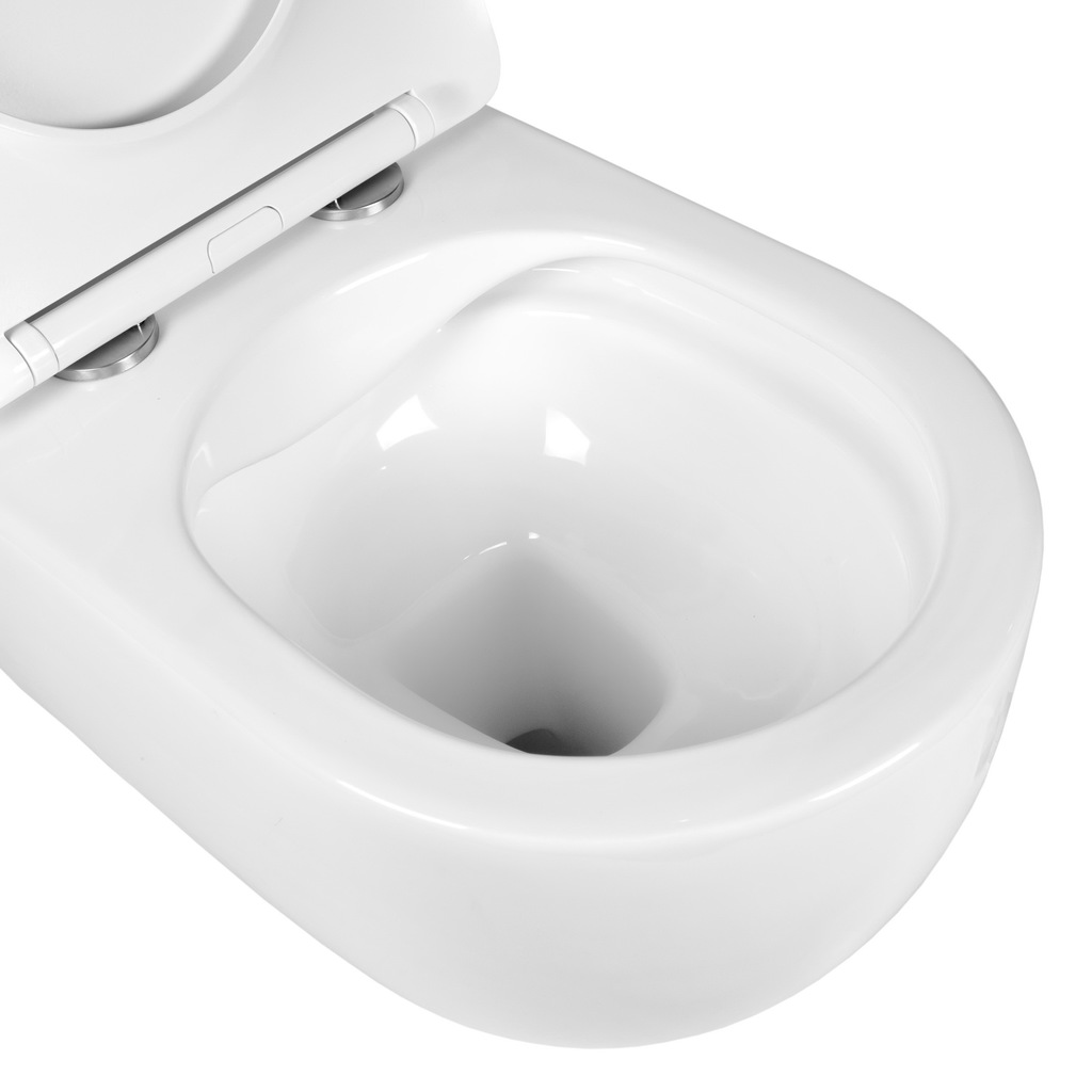 Внешняя обтекаемая форма унитаза не позволяет накапливаться пыли, а внутренняя - безободковая - гарантирует простой уход и отсутствие неприятных запахов. Быстросъемное сиденье сделано из дюропласта и имеет механизм плавного опускания - микролифт; оно очень легко снимается, позволяя быстро и удобно помыть его.
