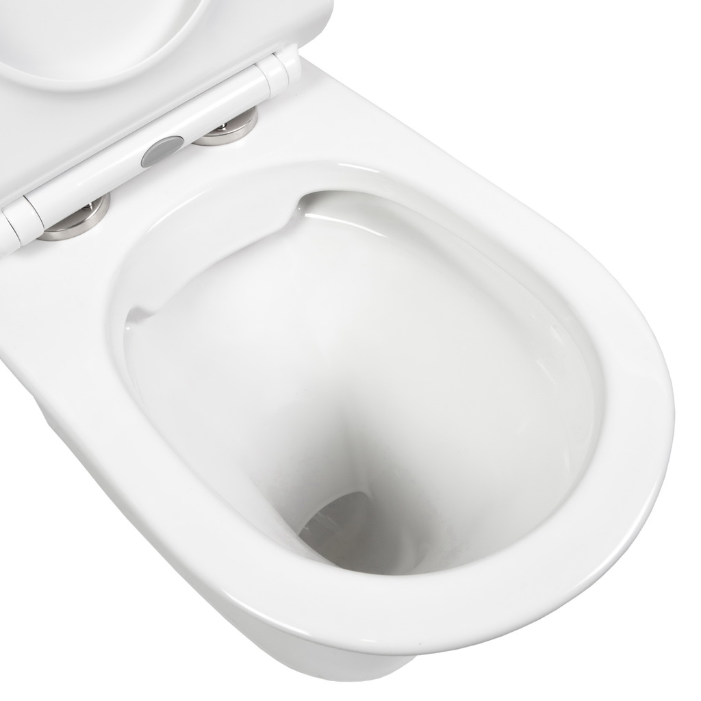 Внешняя обтекаемая форма унитаза не позволяет накапливаться пыли, а внутренняя - безободковая - гарантирует простой уход и отсутствие неприятных запахов. Быстросъемное сиденье сделано из дюропласта и имеет механизм плавного опускания - микролифт; оно очень легко снимается, позволяя быстро и удобно помыть его.