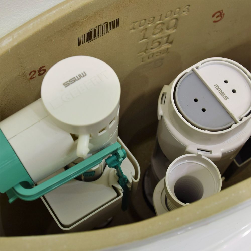 2. Сливная арматура Geberit. Душевая система смыва — через отверстия по всему внутреннему периметру.