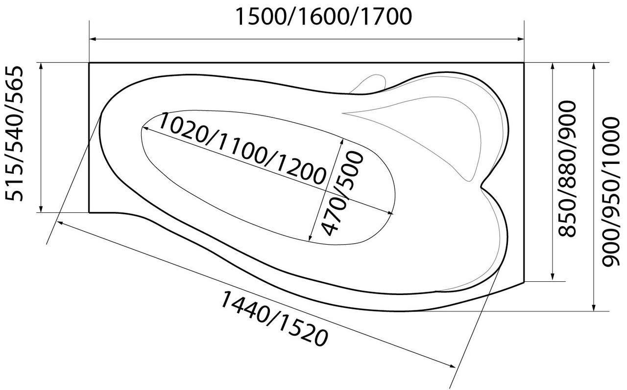 Асимметричная ванна Gracia из литьевого сантехнического акрила достаточно вместительная, при этом она не займет много места в вашей ванной комнате.