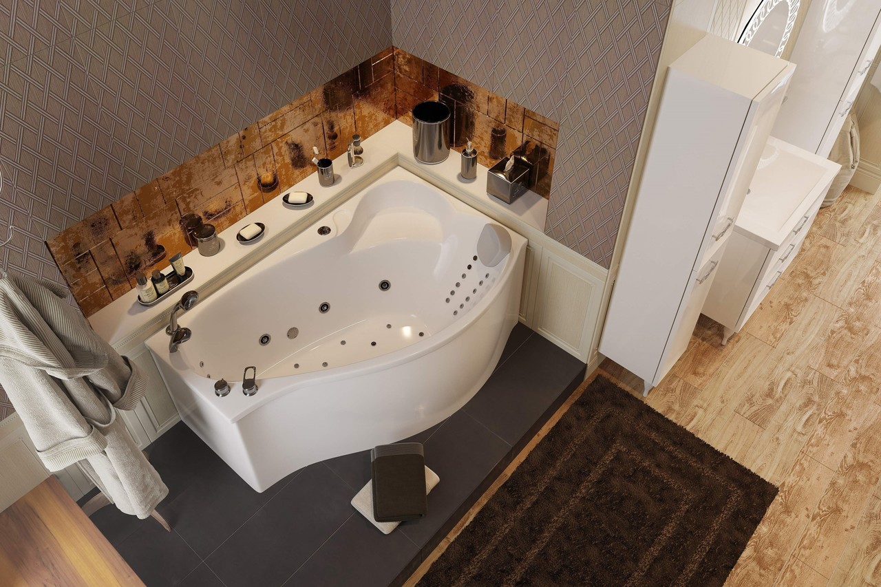 Асимметричная ванна Gracia из литьевого сантехнического акрила достаточно вместительная, при этом она не займет много места в вашей ванной комнате.