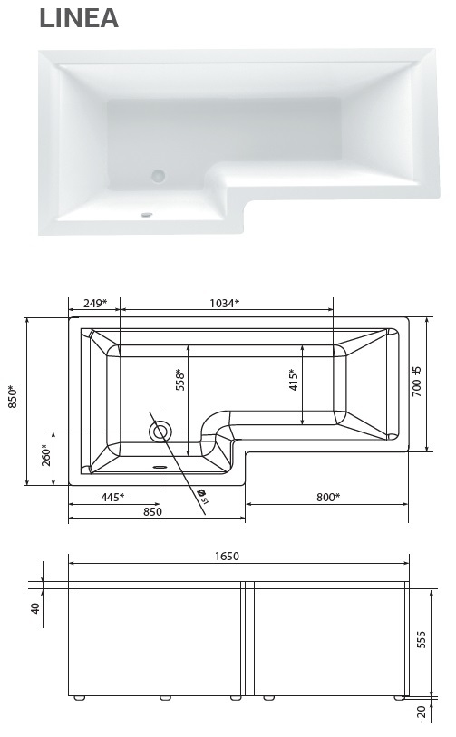 Асимметричная ванна Linea - отличный выбор для людей, предпочитающих принимать душ, но не желающих отказываться от комфорта купания в ванне.