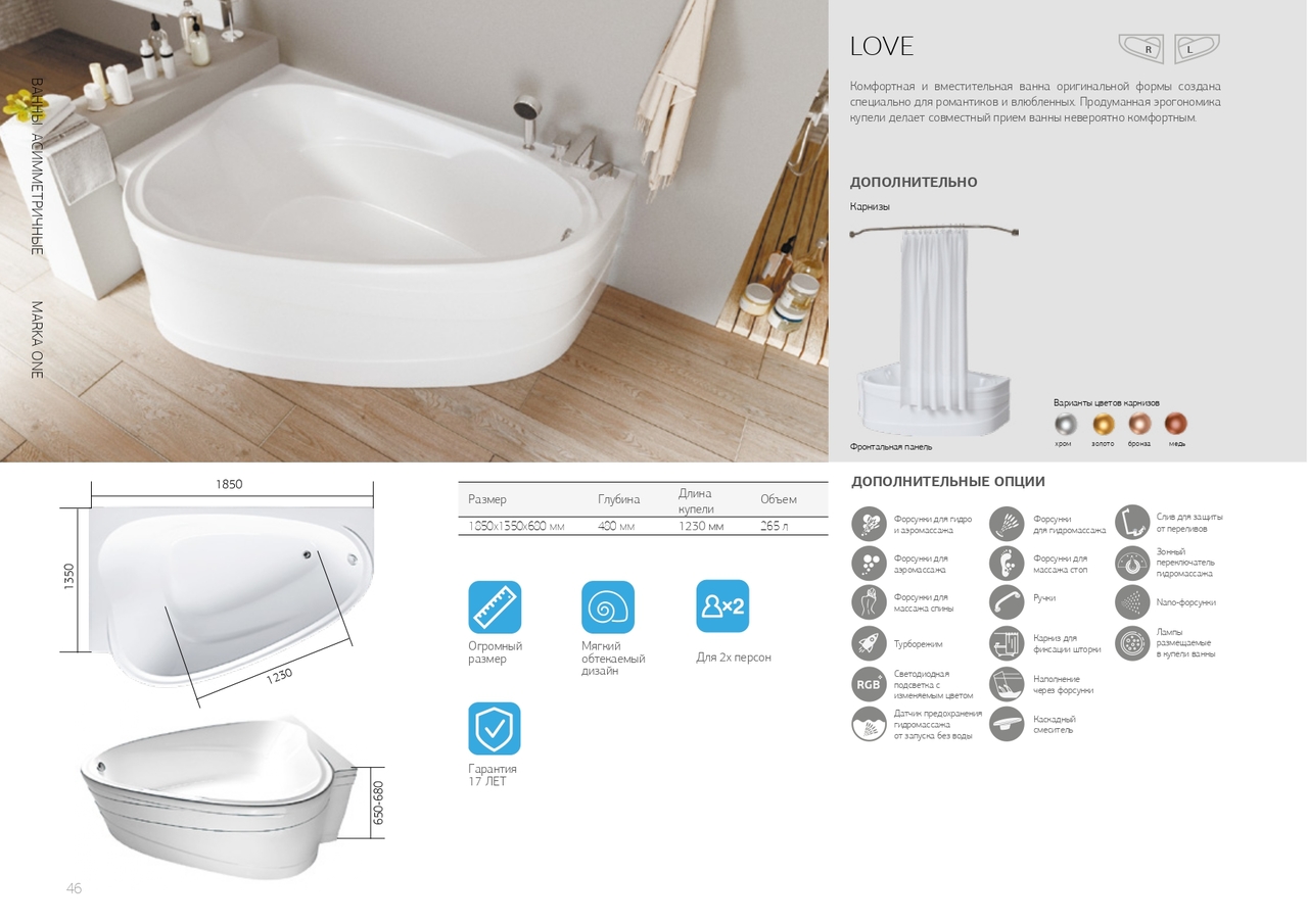 Российская акриловая ванна 1Марка LOVE 185х135 R - цена 48570 руб. Оформить заказ и купить ванну 1Марка LOVE 185х135 R в Москве в нашем интернет магазине можно по телефону или добавив товар в корзину 🛒.