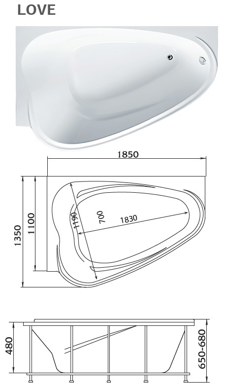Акриловая ванна 1Марка LOVE 185х135 L