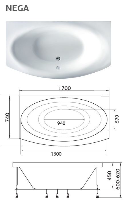 Ванна Nega с овальной купелью - это гармония, комфорт и расслабление в вашей ванной комнате. В ней удобно можно разместиться вдвоем, благодаря просторной чаше и сливу, расположенному по центру.
