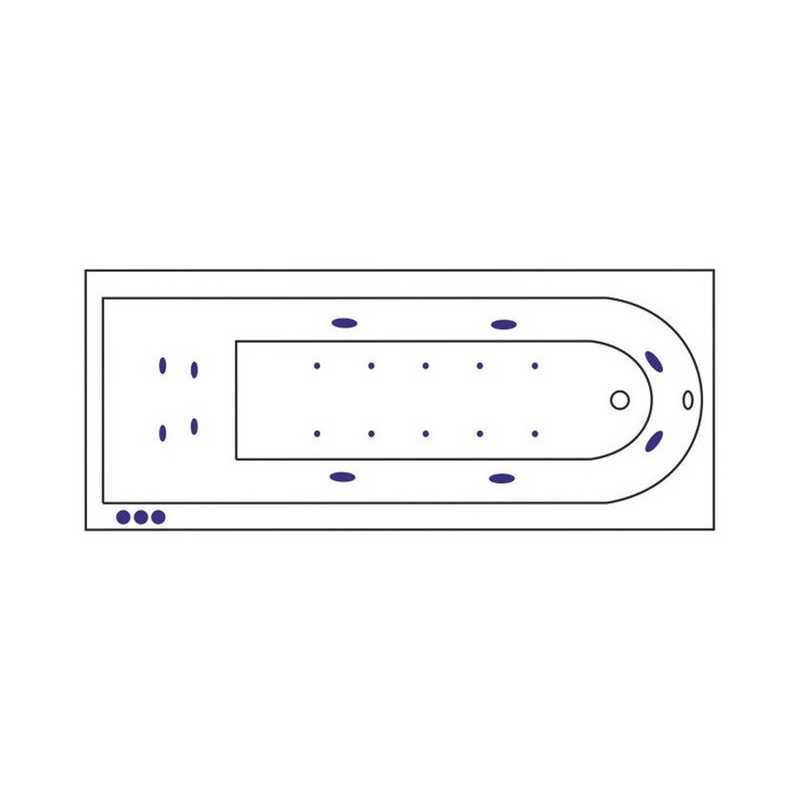 Ванна на каркасе, со сливом-переливом и турбомассажной системой, включающую в себя 4 форсунки основного гидромассажа, 2 форсунки массажа ступней, 4 форсунки на спину и 10 форсунок аэромассажа.