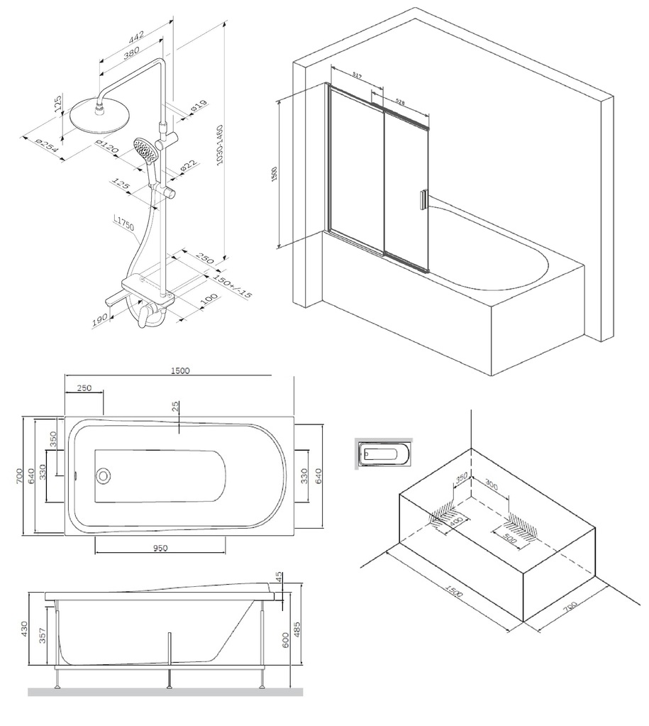 • Душевая шторка на борт ванны со сдвижной дверью.