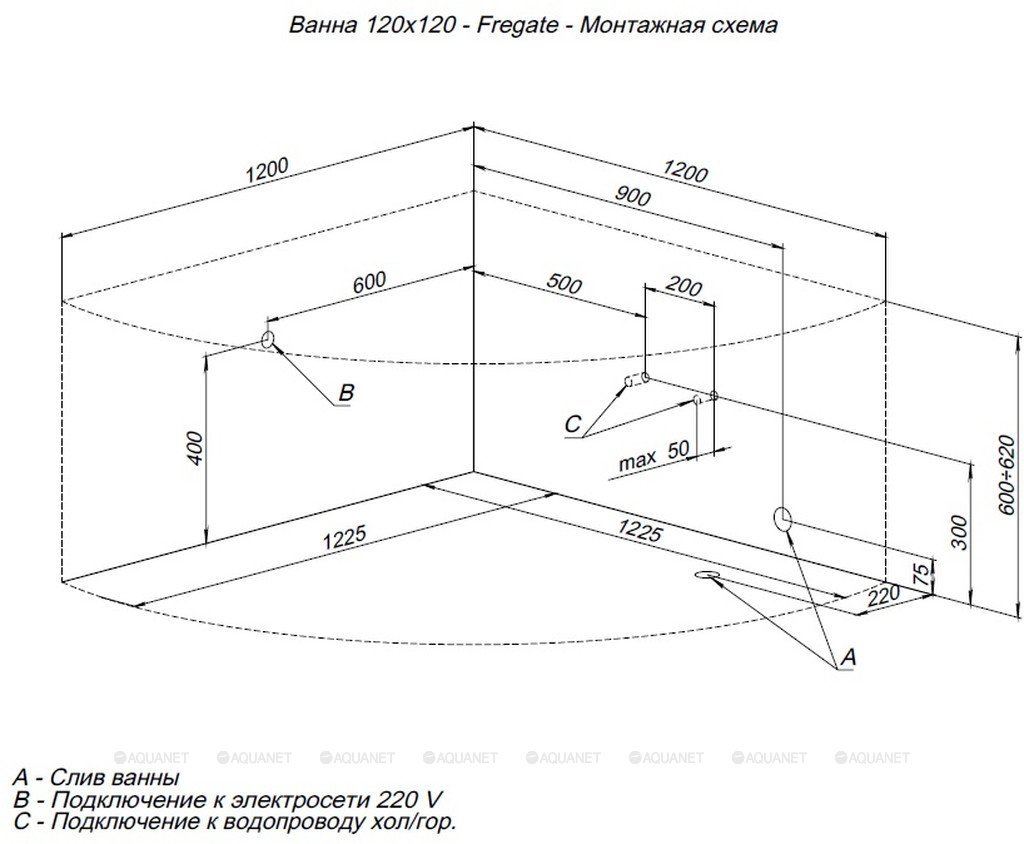 Российская акриловая ванна Aquanet Fregate 120x120 - цена 24552 руб. Оформить заказ и купить ванну Aquanet Fregate 120x120 в Москве в нашем интернет магазине можно по телефону или добавив товар в корзину 🛒.