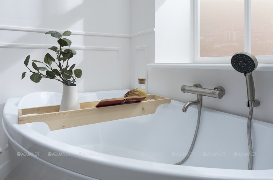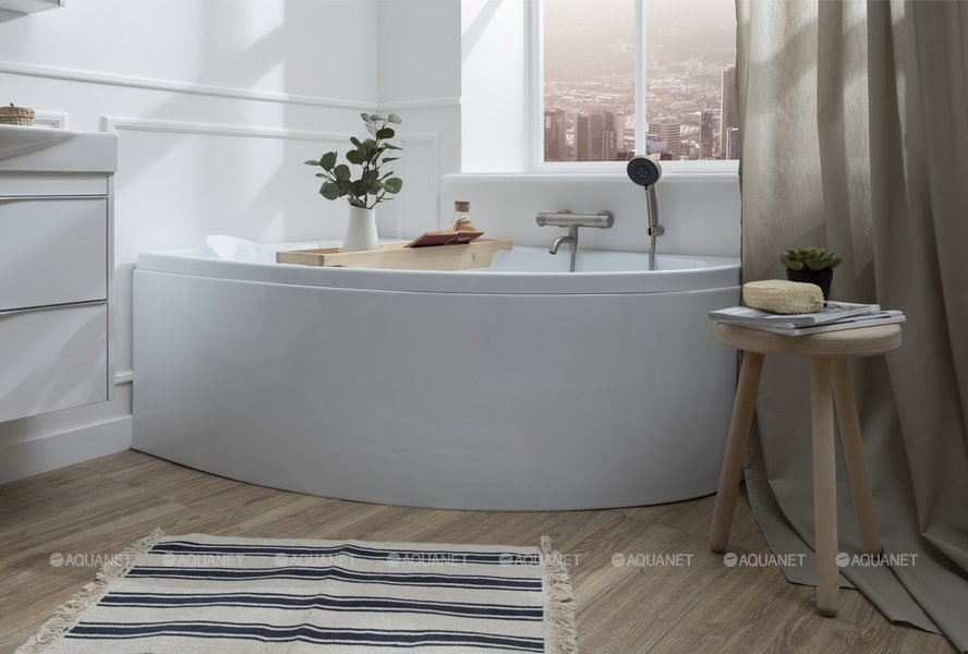 Акриловая ванна Aquanet Lyra устанавливается в углу ванной комнаты. За счет формы с элегантным изгибом она занимает немного места в помещении и при этом весьма вместительна. При глубине 292 мм в нее входит 205 литров воды. Слив-перелив расположен традиционно, а ближе к изголовью в чаше ванны предусмотрено углубление, предназначенное для сиденья. Часто эту удобную выемку используют как полочку для пеномоющих средств. Внешняя поверхность ванны обработана стеклоровингом в два слоя для достижения необходимой прочности, а в местах наибольшей нагрузки установлены закладные. Можно закрыть внутренние подключения с помощью фронтальной панели, специально разработанной для коллекции. Для установки ванны рекомендуем использовать сварной каркас