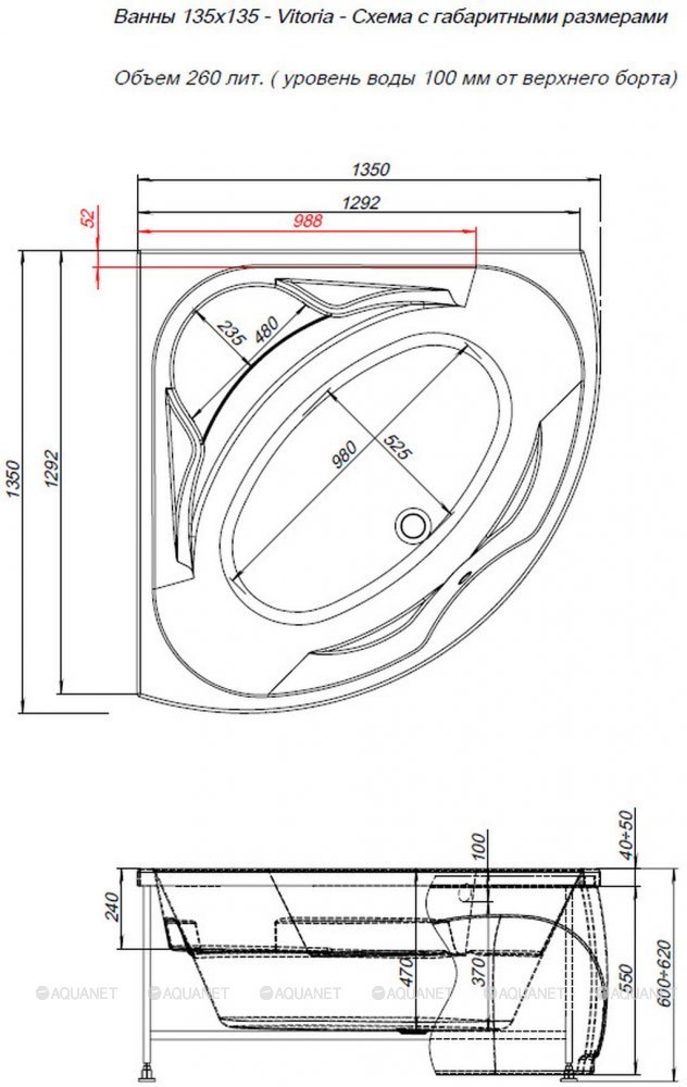 Угловая ванна Aquanet Vitoria 135x135, без гидромассажа. Глянцевая белоснежная поверхность акриловой ванны вызывает восхищение и желание прикоснуться. Материал обладает теплоемкостью и антибактериальными свойствами и устойчив к появлению внешних дефектов. Ванна усилена двойным составом стекловолокна и полиэфирной смолы, в местах нагрузки имеется дополнительное укрепление в виде закладных из МДФ-плиты ВНИМАНИЕ! Фронтальная панель, каркас, а также слив-перелив в стоимость не входят и заказываются дополнительно из числа предложенных
