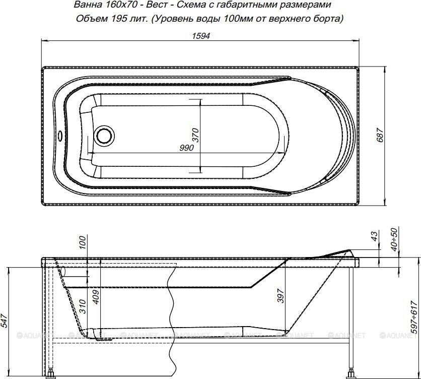 Российская акриловая ванна Aquanet West 160x70 - цена 13745 руб. Оформить заказ и купить ванну Aquanet West 160x70 в Москве в нашем интернет магазине можно по телефону или добавив товар в корзину 🛒.