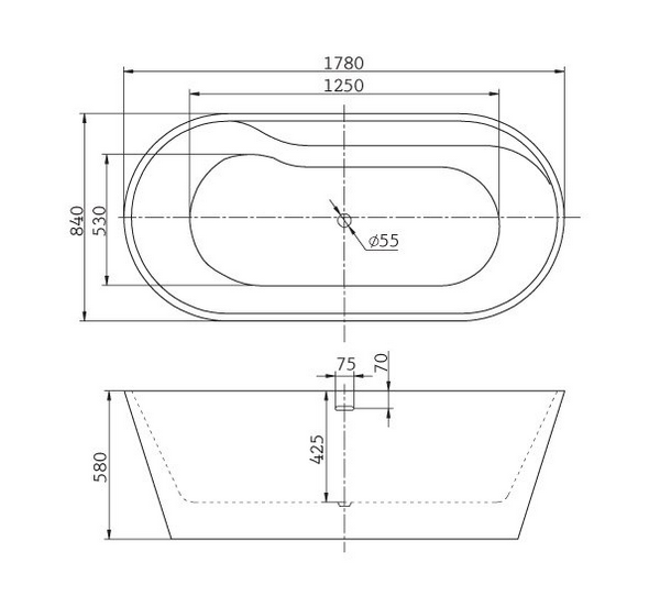 Комплектация: ванна, декоративная накладка на отверстие перелива в цвете хром, инструкция.