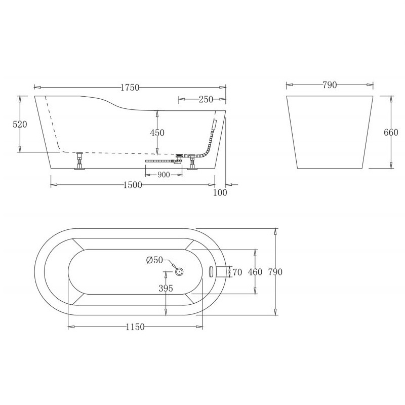 Комплектация: ванна, слив-перелив цвета хром, инструкция.