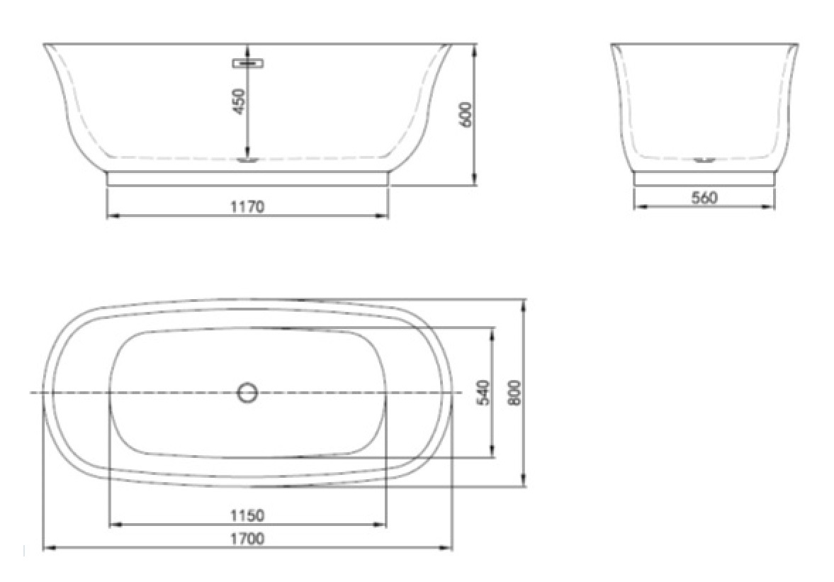 Ванна акриловая Ceramica Nova 170 х 80 см, овальная, белый, FB08