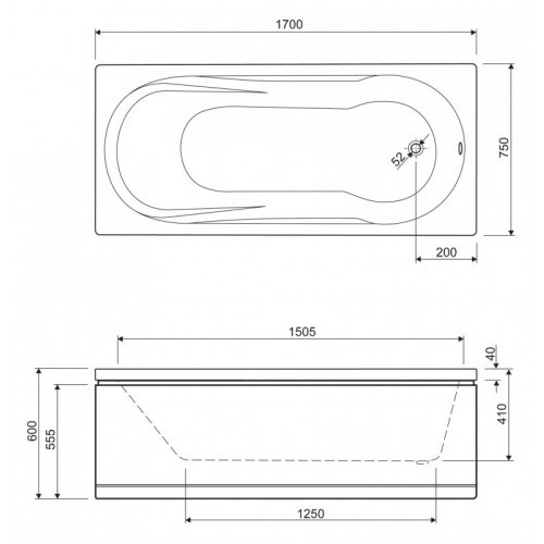 Универсальный установочный комплект для 3-й панели прямоугольной акриловой ванны