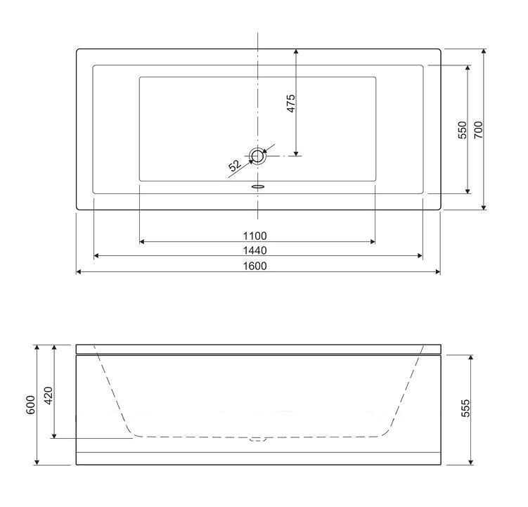 Акриловая ванна Cezares Plane 160х70 с гидро- и/или аэромассажем бронза