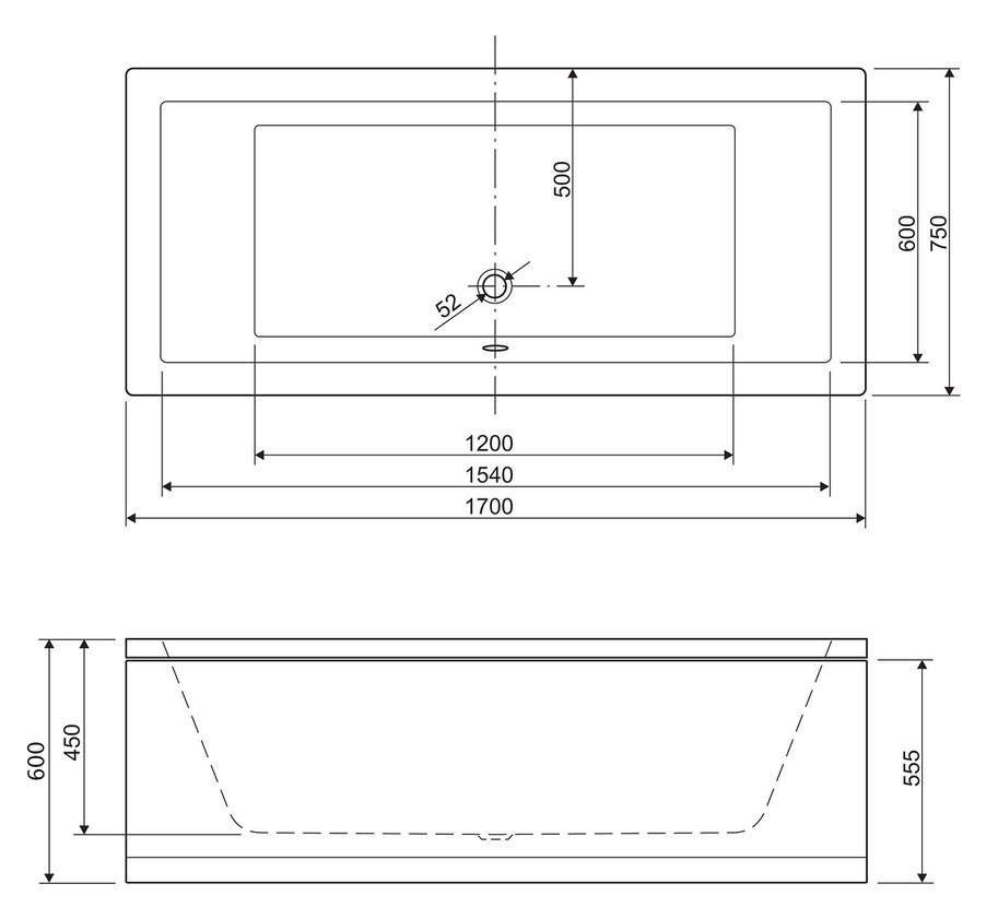 Расположение слива-перелива: по центру