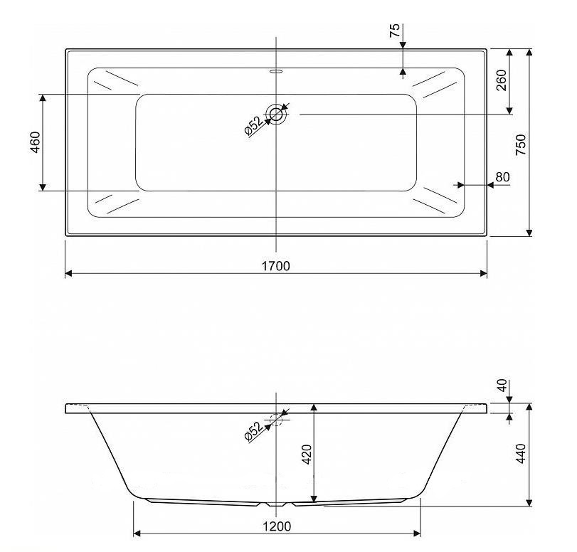 Размер (ДхШ),  см: 170x75